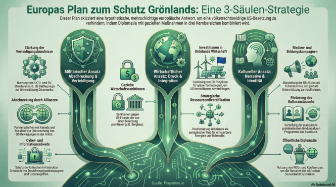 Grönland, als autonomes Gebiet Dänemarks und damit Teil des Königreichs Dänemark, hat eine strategische Bedeutung aufgrund seiner Lage im Arktis, Ressourcen wie seltene Erden und Klimadaten. Eine US-Besetzung wäre ein Verstoß gegen internationales Recht, einschließlich der UN-Charta und des Völkerrechts. Europa (hier verstanden als EU und verbündete Staaten wie Norwegen und das Vereinigte Königreich) müsste… Fundierter Plan für… Weiterlesen »